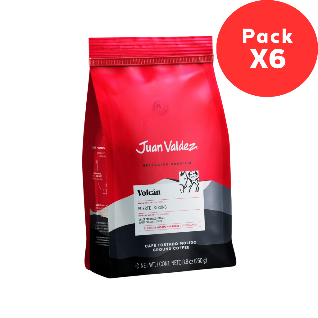 Pack de 6 bolsas de 250 gramos cada una de café molido línea premium Volcán.